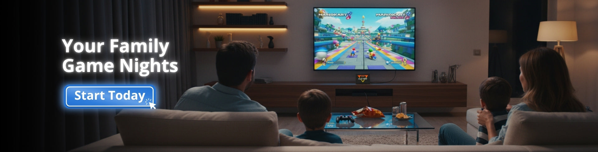 Before online lobbies and in-app purchases... gaming was about sitting together on the couch. Racing your dad in Mario Kart. Beating your mom at Street Fighter. Building memories one level at a time.