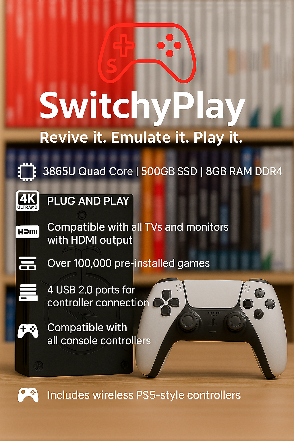 We created SwitchyPlay™ because we were tired of overpriced consoles, missing classics, and never-ending subscriptions. This is our dream machine — and now it’s yours.
